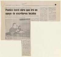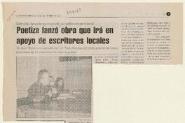 Poetiza lanzó obra que irá en apoyo de escritores locales [artículo] / El Ovallino (Diario : Ovalle, Chile)-- jul. 22, 2001, p. 7. .