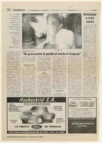 Mi generación le perdió el miedo al lenguaje" [artículo] / Diario Chañarcillo (Diario : Chañaral, Chile)-- dic. 20, 1998, p. 8. .