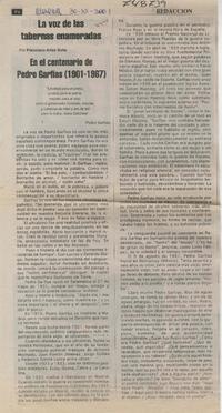 En el centenario de Pedro Garfias (1901-1967) [artículo] / Francisco Arias Solis. Atacama (Diario : Copiapó, Chile)-- dic. 30, 2001, p. 6. .