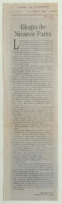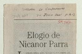 Elogio de Nicanor Parra [artículo] Hugo Rolando Cortés.
