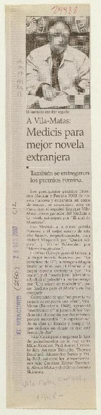 Medicis para mejor novela extranjera. [artículo] El Mercurio (Diario : Santiago, Chile)-- oct. 28, 2003, p. C12. retr. .