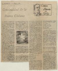 Continuidad de la poesía chilena [artículo] Ricardo A. Latcham.