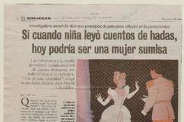 Si cuando niña leyó cuentos de hadas, hoy podría ser una mujer sumisa [artículo] / Kathya Alegría. Las Últimas Noticias (Diario : Santiago, Chile)-- mayo 16, 2004, p. 10. .