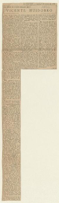 Los jueves de Joaquin Edwards Bello "Vicente Huidobro" [artículo] / Joaquín Edwards Bello. La Nación (Santiago, Chile)-- ene. 8, 1948. .
