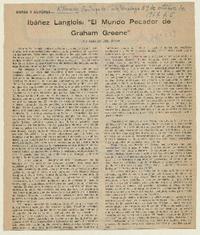 Ibáñez Langlois: "El mundo pecador de Graham Greene" [artículo] / Hernán del Solar. El Mercurio (Santiago, Chile)-- oct. 29, 1967, p. 5. .