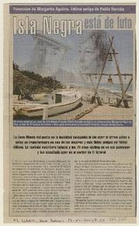 Funerales de Margarita Aguirre, íntima amiga de Pablo Neruda, Isla Negra está de luto. [artículo] El Líder (San Antonio, Chile)-- dic. 17, 2003, p. 11. retr. .