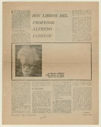 Dos libros del profesor Alfredo Jadresic [artículo] / Alejandro Lipschütz. El Siglo (Diario : Santiago, Chile)-- sept. 21, 1969, p. 10. .