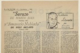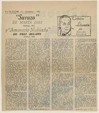 Surazo" de "Marta Jara" [artículo] / Ricardo Latcham. La Nación (Diario : Santiago, Chile)-- sept. 9, 1962, p. 2. .