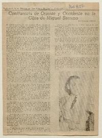 Concfluencia de Oriente y Occidente en la Obra de Miguel Serrano [artículo] / Edmundo Concha. Las Últimas Noticias (Diario : Santiago, Chile)-- dic. 29, 1962 (suplemento "Los Sábados") .