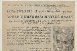 Conferencia Tricontinental, tarea noble y honrosa : Manuel Rojas [artículo] Nikolai Chiguir.