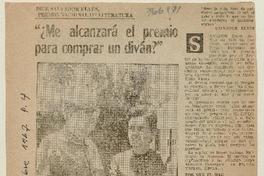 "¿Me alcanzará el premio para comprar un diván"? [artículo] El Siglo (Diario : Santiago, Chile)-- dic. 15, 1967, p. 4. retr. .