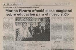 Marino Pizarro ofreció clase magistral sobre educación para el nuevo siglo [artículo] El Heraldo (Linares, Chile)-- oct. 19, 2004, 6 fot. .
