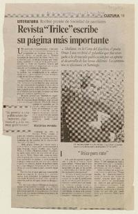 Revista "Trilce" escribe su página más importante [artículo]. El Sur (Diario : Concepción, Chile)-- dic. 27, 2006, p. 19 .