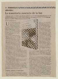 La transitoria ausencia de la luz [artículo]/ El Sur (Diario : Concepción, Chile)-- dic. 3, 2006, p. 30 .
