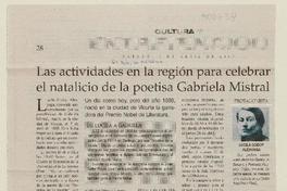 Las Actividades en la región para celebrar el natalicio de la poetisa Gabriela Mistral [artículo].