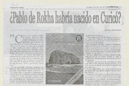 ¿Pablo de Rokha habría nacido en Curicó? [artículo] / Juan Pablo Jiménez. La Prensa (Diario : Curicó, Chile)-- abr. 22, 2007, p. 3. .