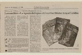 Lanzan libro "La agonía del agua" del escritor Héctor Araya Cubillos [artículo]. La Estrella del Huasco (Chile) dic. 12, 2006 .
