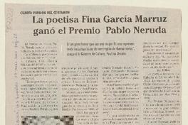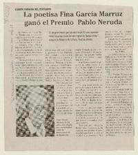 La Poetisa Fina García Marruz ganó el Premio Pablo Neruda [artículo]. La Tribuna (Los Angeles, Chile) mar. 15, 2007, p. 22 .