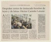 Despiden restos de destacado hombre de leyes y de letras: Héctor Carreño Latorre [artículo].