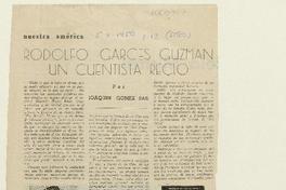Rodolfo Garcés Guzmán, un cuentista recio [artículo] / Joaquín Gómez Bas. Nuestra América (revista : Santiago, Chile)-- mayo 5, 1950, p. 13. .