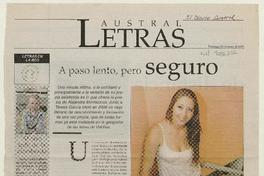 A paso lento, pero seguro [artículo] / Daniel Navarrete A. El Diario Austral (Diario : Valdivia, Chile)-- ene. 25, 2009, p. 1 (suplemento "Austral Letras") .