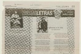 Las bellas letras [artículo] / Marino Muñoz Lagos. El Centro (Diario : Punta Arenas, Chile)-- feb. 5, 2009, p. 11. .