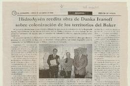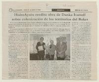Hidroaysén reedita obra de Danka Ivanoff sobre colonización de los territorios del Baker. [artículo] El Divisadero (Diario : Aysén, Chile)-- ene. 19, 2009, p. 12. .