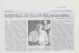 Memorial de Isla Negra [artículo] / Edgardo Alarcón Romero. La Prensa (Diario : Curicó, Chile)-- ene. 4, 2009, p. 3. .