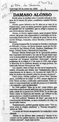 Dámaso Alonso. [artículo] El Día (Diario : La Serena, Chile)-- ene. 28, 1990, p. 3. .