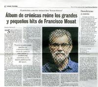 Álbum de crónicas reune los grandes y pequeños hits de Francisco Mouat [artículo] Las Últimas noticias (Diario : Santiago, Chile)-- oct. 27, 2020, p. 30. .