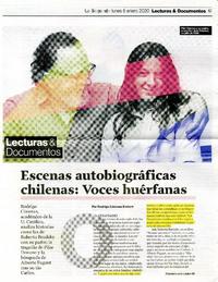 Escenas autobiográficas chilenas : Voces huérfanas [artículo] / Por Rodrigo Cánovas Emhart. La Segunda (Diario : Santiago, Chile)-- ene. 6, 2020, p. 17-19. (suplemento "lecturas y documentos") .