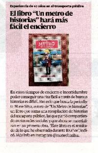 El libro "Un metro de historias" hará más fácil el encierro [artículo] La Cuarta (Diario : Santiago, Chile)-- mayo 5, 2020, p. 11. .