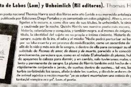 Materias: Autores chilenos - Harris, Thomas - Gesta de Lobos - Unheimlich