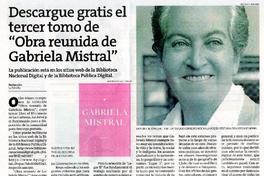 Descargue gratis el tercer tomo de "Obra reunida de Gabriela Mistral" [artículo]. La estrella (Diario : Tocopilla, Chile)-- jun. 05, 2020, p. 18. .