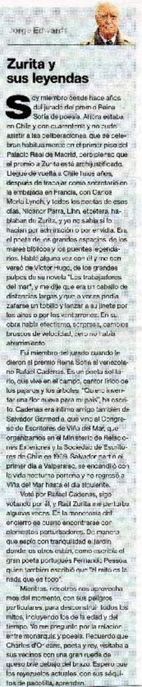 Zurita y sus leyendas [artículo] Jorge Edwards.