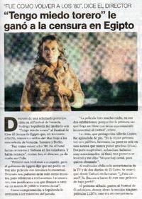 "Tengo miedo torero" le ganó a a la censura en Egipto "Fue como volver a los '80", dice el director/ [artículo] : La Segunda (Diario : Santiago, Chile)-- nov. 12, 2020, p. 21. .