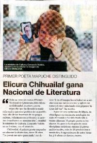 Elicura Chihuailaf gana Nacional de Literatura. [artículo] La Segunda (Diario : Santiago, Chile)-- sept. 1, 2020, p. 21. .