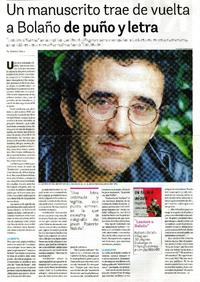 Un manuscrito trae de vuelta a Bolaño de puño y letra [artículo] Cristóbal, Gaete.