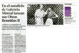 En el natalicio de Gabriela Mistral lanzan sus "Obras Reunidas II" [artículo] Andrés Goméz Bravo.