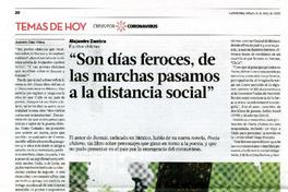 "Son días feroces, de las marchas pasamos a la distancia social" [artículo] Antonio Diaz Oliva.