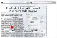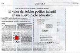 El valor del folclor poético infantil en un nuevo pacto educativo [artículo] / Iñigo Díaz. El Mercurio (Diario : Santiago, Chile)-- feb. 28, 2020, p. A8. .
