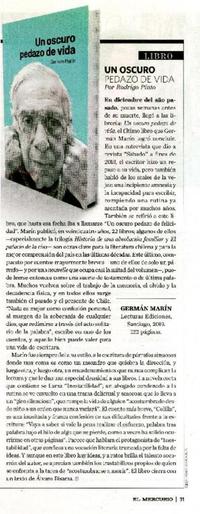 Materias: Autores chilenos - Marín, Germán - Un oscuro pedazo de vida
