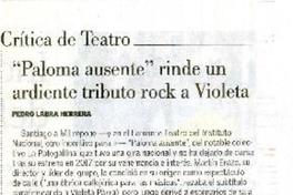 "Paloma ausente" rinde un ardiente tributo rock a Violeta [artículo] Pedro Labra Herrera.