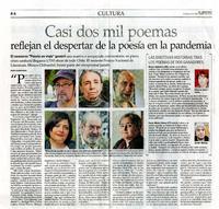 Casi dos mil poemas reflejan el despertar de la poesía en la pandemia [artículo] / Elena Irarrázabal. El Mercurio (Diario : Santiago, Chile)-- sept. 4, 2020, p. A6. .