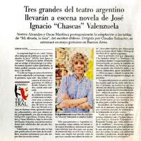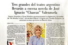 Tres grandes del teatro argentino llevarán a escena novela de José Ignacio "Chascas" Valenzuela Bárbara Castro. [artículo] / El Mercurio (Diario : Santiago, Chile)-- ene. 19, 2020, p. C16. .