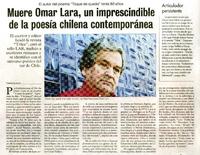 Muere Omar Lara, un imprescindible de la poesía chilena contemporánea [artículo] / Fabián Llanca. Las Últimas Noticias (Diario : Santiago, Chile)-- jul. 3, 2021, p. 34. .