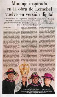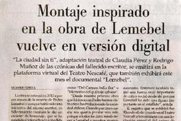 Montaje inspirado en la obra de Lemebel vuelve en versión digital [artículo] / Raimundo Flores S. El Mercurio (Diario : Santiago, Chile)-- jul. 5, 2021, p. C10. .