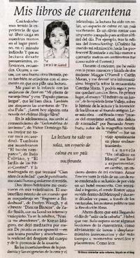 Mis libros de cuarentena [artículo] / Elena Irarrázabal. El Mercurio (Diario : Santiago, Chile)-- ago. 3, 2020, p. A3. .