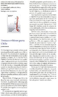 Temas críticos para Chile [artículo] / Juan Rauld. Mensaje (Revista : Santiago, Chile)-- no. 697, (marzo-abril), p. 61. .