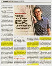 Amigos despiden al crítico Manuel Vial, "un hombre del renacimiento" [artículo] / Tomás Basaure. La Segunda (Diario : Santiago, Chile)-- agos. 5, 2021, p. 28. .